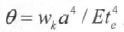 式中,wk為垂直于玻璃幕墻平面的風荷載標準值(詞條“標準值”由行業大百科提供),(N/mm);a為玻璃短邊變長,(mm);μ為撓度系數,可由玻璃短邊與長邊邊長比按規范《玻璃幕墻工程技術規范(JGJ102-2003)》確定,η為折減系數,可由參數θ按照規范確定,且: