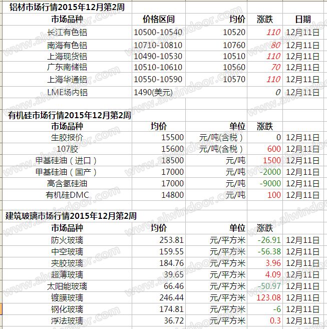 此原材料價(jià)格由中國(guó)幕墻網(wǎng)收集整理,僅供參考!