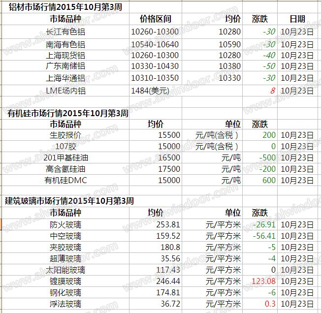 此原材料價格由中國幕墻網收集整理,僅供參考!