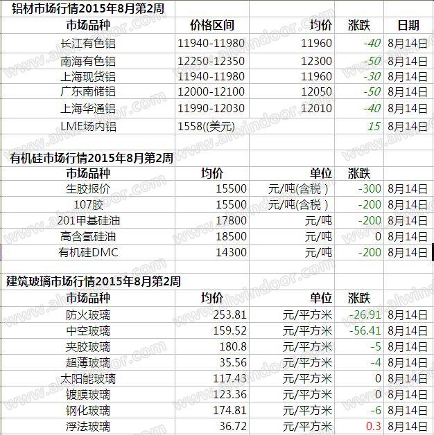 此原材料價(jià)格由中國(guó)幕墻網(wǎng)收集整理,僅供參考!
