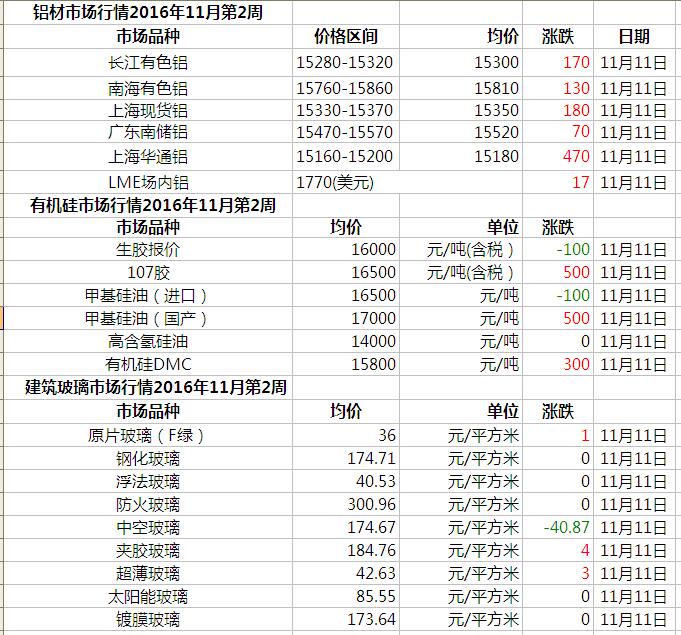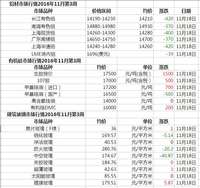 此原材料價格由中國幕墻網(wǎng)收集整理,僅供參考!