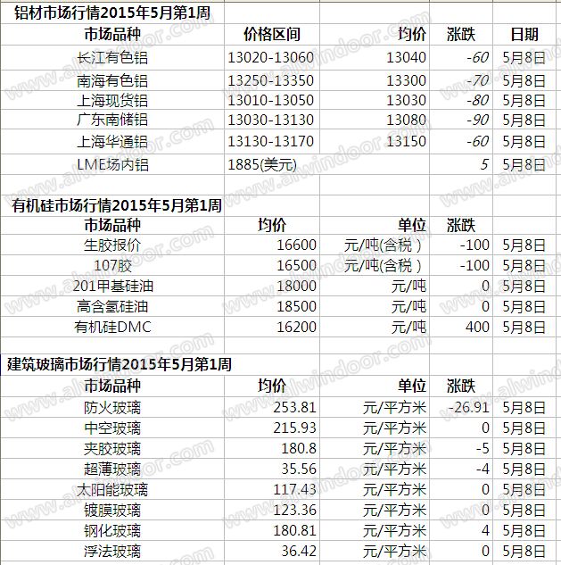 此原材料價(jià)格由中國幕墻網(wǎng)收集整理,僅供參考!