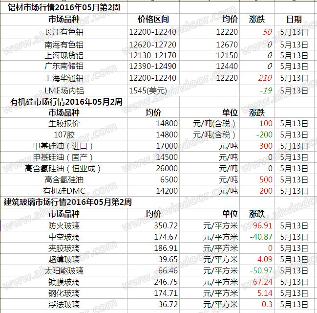 此原材料價格由中國幕墻網收集整理,僅供參考!