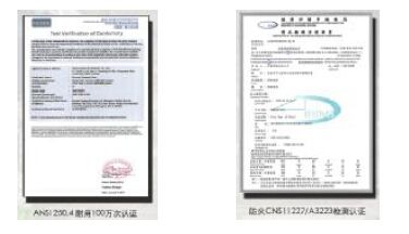 3.5 專業(yè)防火級別:美國UL 10B 、CNS11227/A3223檢測認(rèn)證。