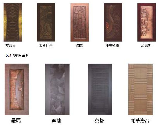 1.9 提供最豐富的飾面選材:發(fā)色銅雕、模壓銅雕、重力鑄鋁、實木、科技木及多層板等等