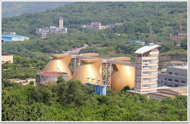 2014年7月26日,重慶南岸區雞冠石污水處理廠的四個燃燒塔身披“土豪金外衣”,圓圓望去,酷似一個個“金蛋”。