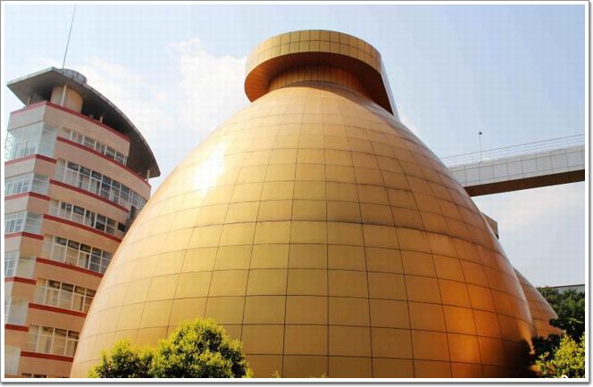 “土豪金”異型鋁板幕墻加持重慶污水廠