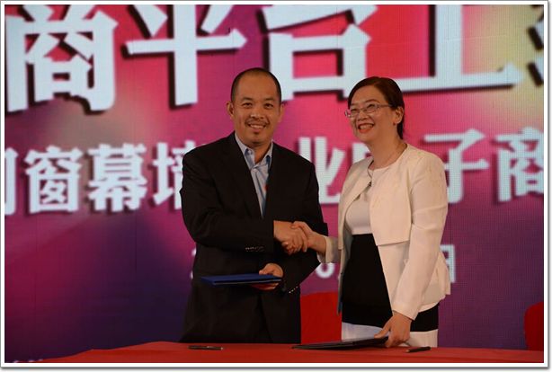廣州行盛玻璃幕墻工程有限公司董事長 翁華銀與大貓電商簽約