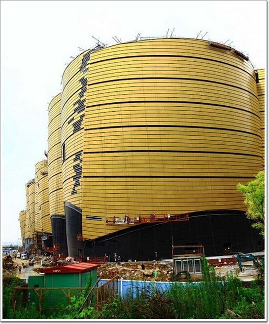 一座編鐘造型的建筑亮相武漢,該建筑外立面貼滿了“土豪金條”。這個被稱為“黃金屋”的電影樂園耗資38億元,是全球首家室內電影樂園,設有4D、5D、飛行劇場等6個電影科技娛樂項目。據悉該建筑的創意來自楚文化的精髓——編鐘。