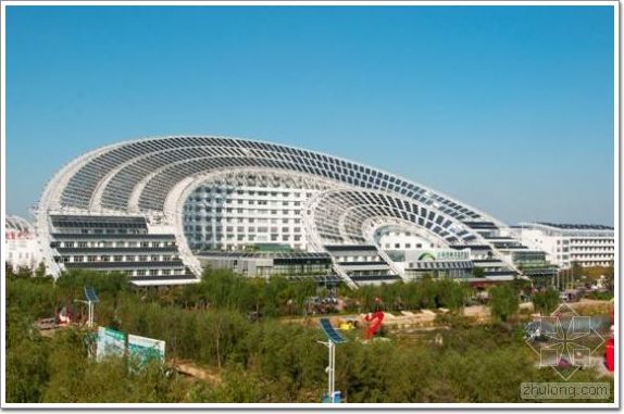 斗拱造型的中國國家館被譽為“東方之冠”。夏季,頂層建筑可以為底層建筑遮陽,起到一定的降溫作用。另外應(yīng)用了生態(tài)農(nóng)業(yè)景觀技術(shù),能有效隔熱,使建筑能耗降低25%以上。世博中心設(shè)計遵循“3R”原則,大力增強建筑圍護(hù)結(jié)構(gòu)的保溫性,減少熱量損失。應(yīng)用了自遮陽(詞條“遮陽”由行業(yè)大百科提供)、太陽能采集、雨水收集等多項環(huán)保技術(shù)。