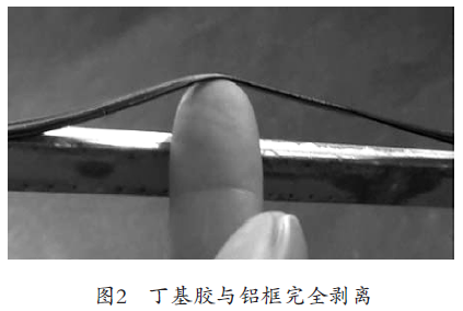 筆者就間隔條與丁基膠之間的黏接性這一復合性因素作為切入點進行討論,從圖1和圖2中可以看出丁基膠的黏結情況。