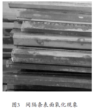 由于生產工藝的原因或者存儲條件不當,導致間隔條出現了氧化現象,如圖3。