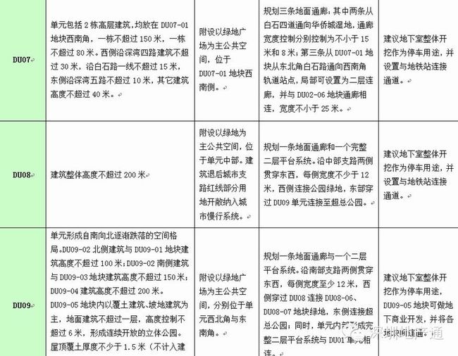 DU01單元:是超級總部基地標志性核心區,作為規劃軌道機場線(11號線)和梅林線(9號線)紅樹灣站上蓋物業,應注重與軌道交通建設及周邊區域的地下空間、二層通廊、公共空間、建筑形態的協調,進行整體設計和統籌考慮,形成該片區第一和第三高度(600米~680米和400米~480米)的兩組城市綜合體。