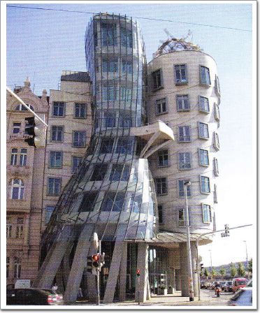 這座建筑是由弗蘭克·蓋里和建筑師 Vlado Milunic共同設計完成。它看上去就像一對正在跳舞的情侶,外形的弧線猶如伴隨音樂飄揚的裙擺,使造型更加完美。它完全打破了布拉格原先統一的建筑風格,使布拉格成為具有動感和文化底蘊的城市。1989年普立茲克建筑獎對弗蘭克·蓋里的評語是: “最具美學冒險精神”。