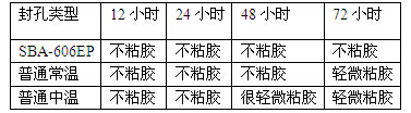 表(3)SBA-606EP與普通常溫、中溫封孔70℃粘膠對比