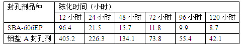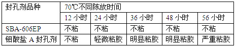 表(4)SBA-606EP與鉬酸鹽A封孔貼膜方面的對比