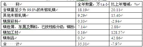歐盟、日本和美國是中國鎂的三大出口市場。2005年中國鎂出口產品的種類及數量見表7。