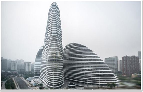 北京望京SOHO中心是由SOHO中國開發的,集零售和辦公于一體的綜合體,位于北京市朝陽區望京B29地塊,項目總建筑面積521,265m2,地上建筑面積392,265m2。建筑方案設計由扎哈·哈迪德擔綱,由三個巨大的卵石狀的建筑組成,建筑高度分別為118m、127m和200m。目前,望京SOHO中心的外部結構接近完工,按照計劃,將于今年營業。