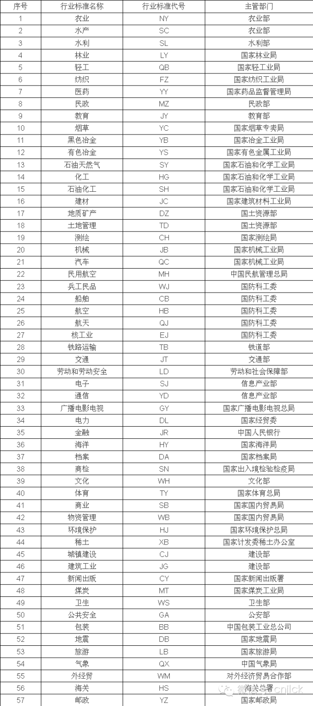 注:行業(yè)標(biāo)準(zhǔn)分為強制性和推薦性標(biāo)準(zhǔn)。表中給出的是強制性行業(yè)標(biāo)準(zhǔn)代號,推薦性行業(yè)標(biāo)準(zhǔn)的代號是在強制性行業(yè)標(biāo)準(zhǔn)代號后面加“/ T”,例如農(nóng)業(yè)行業(yè)的推薦性行業(yè)標(biāo)準(zhǔn)代號是NY / T。