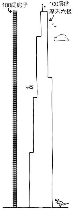 一座超級摩天大樓或許能有100層,說白了就是100套平房疊起來。