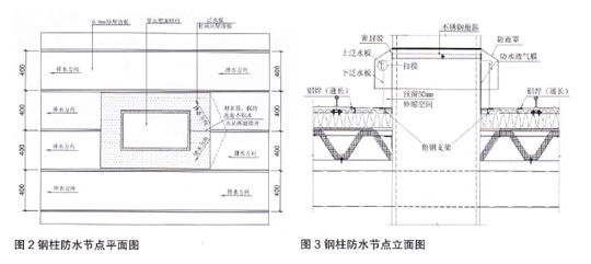 3.1.1對于穿屋面柱,其防水節點完成后與屋面是一體的,節點具體做法如圖2、圖3所示: