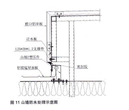 穿屋面鋼柱、大窗以及天溝、檐口處防水節點通過鋁板或不銹鋼等金屬制成異性防水、批水板材,將鋼柱、天窗包住,并結合耐候密封膠將所有縫隙填充的方法完成防水節點。