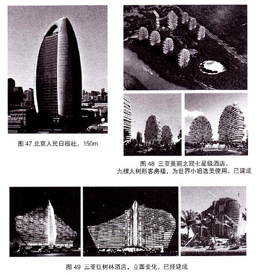 許多新穎建筑的體型我們只在科幻電影中見過,他們像一幅一幅動漫的畫片出現在我們的面前,我們不能不為建筑師的奇思妙想贊嘆(圖57~圖65)。