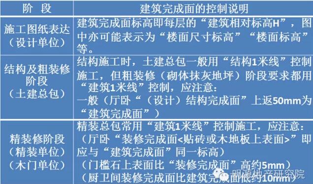1.建筑1米線:設計圖紙中“建筑相對標高H”之上1米的水平控制線,即:精裝修階段,廳臥“裝修完成面;貼磚或木地板上表面;之上1米的水平控制線。