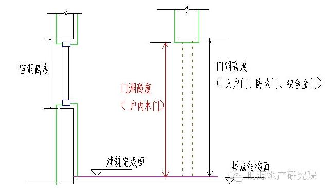 (2)各類門的洞口高度均從建筑完成面起算,以建筑完成面或建筑1米線進行控制;