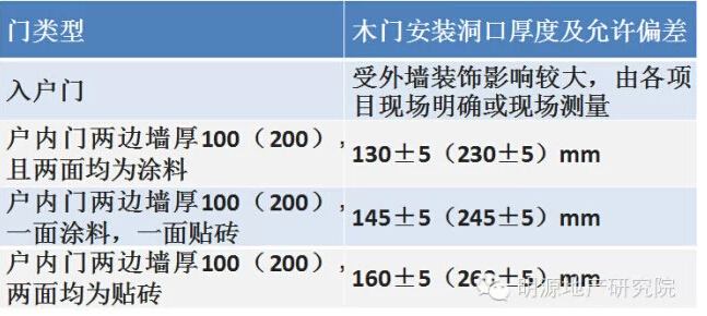 (5)木門安裝洞口厚度:門洞兩邊墻體厚度應相同,木門安裝洞口厚度=墻體厚度+墻體兩邊裝飾面厚度。