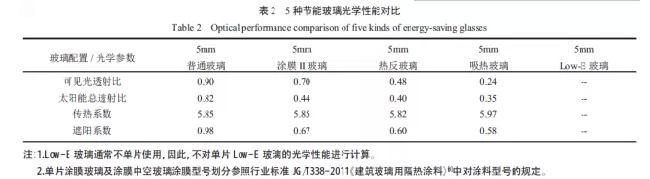 2 幾種節(jié)能玻璃熱工性能模擬計(jì)算