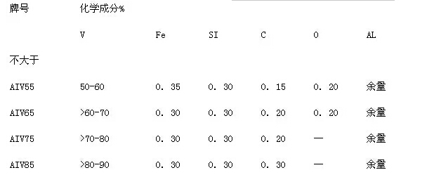 一、釩鋁合金的牌號及化學(xué)成分有如下表:
