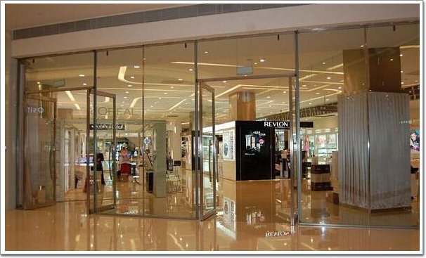 防火玻璃隔墻采用大片防火玻璃(4×2米),中梃采用纖細的耐熱不銹鋼組合成通透明亮的窗櫥式隔墻,集防火安全、空間共享、商品展示之大成。