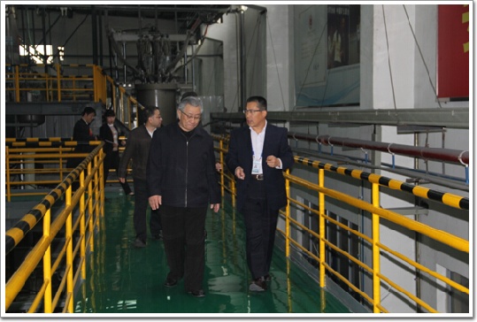 王有治總裁陪同李盛霖主任參觀自動化生產車間