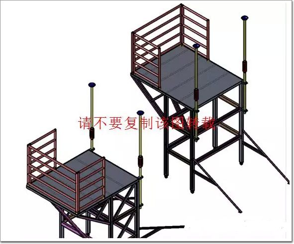 側掛鋁板屬于外挑形式側掛板的安裝,由于該項目每層都是往后退臺建筑構造,幕墻效果也是隨之變幻,這就是說該項目再按照常規方案是無法實施的,因此根據項目實際特點以及所可以利用的環境條件,綜合分析便自行設計、加工了符合項目施工條件使用的安裝用可移動平臺。