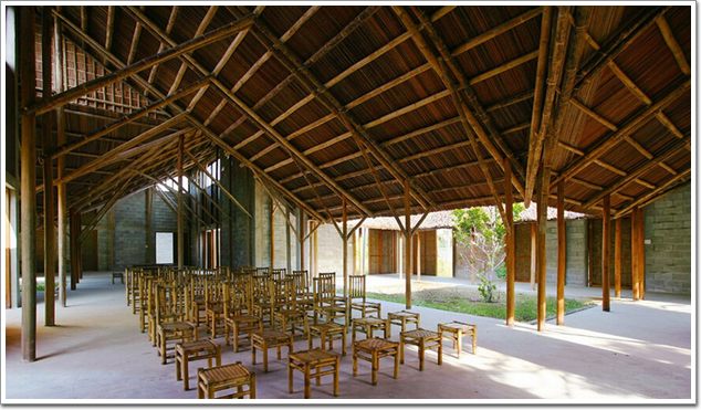 公共建筑和社區類建筑獎:越南惠安社區活動中心(Cam Thanh Community House)。整個設計簡單質樸,并且充分利用了當地的資源和材料。由竹子與椰子樹葉鋪成的房頂一起極大地削弱了太陽光輻射的威力,同時還為室內提供了陰涼。