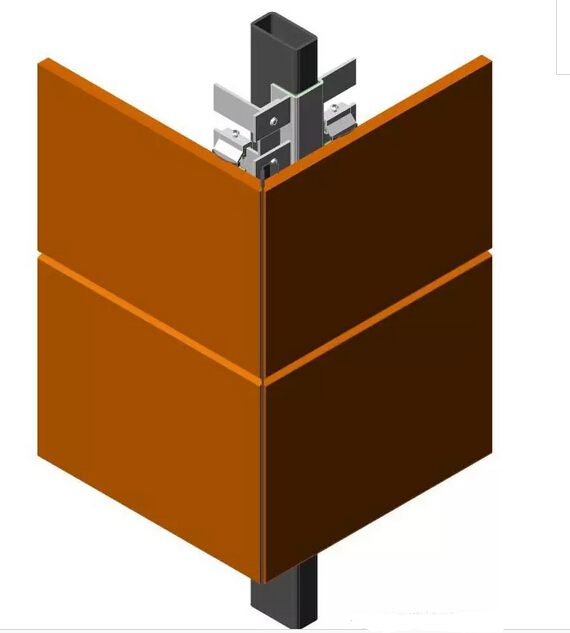 陶土板幕墻的陰角轉角處理比較簡單,兩塊板直接對拼就行了。三維示意見下圖: