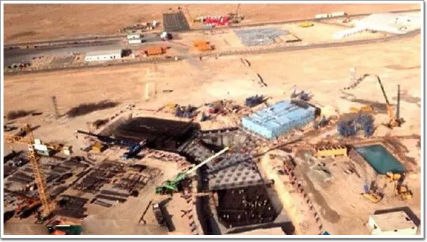 用一根直徑15厘米左右的高壓細管把濕水泥‘噴’到高塔上,并且只能在黑夜中運送,否則白晝的沙漠高溫會讓水泥在管子里干固凝結(jié)