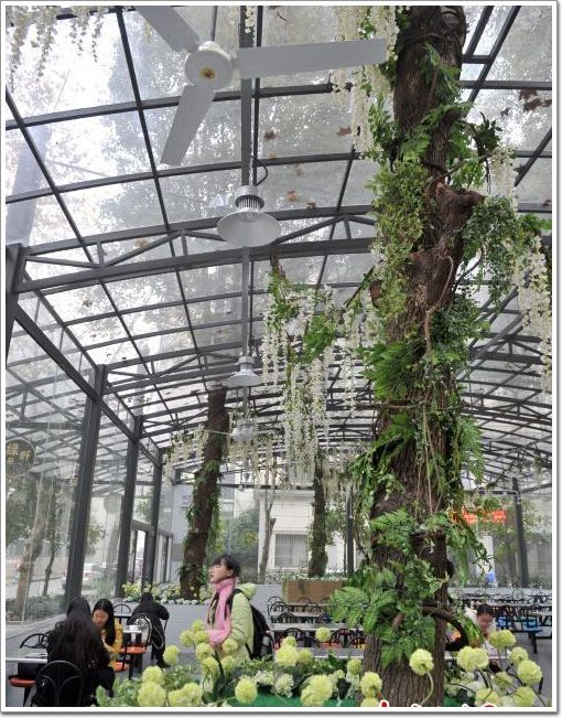 槐花垂絳,藤蔓纏繞,5棵樟樹穿過透明玻璃屋頂肆意生長
