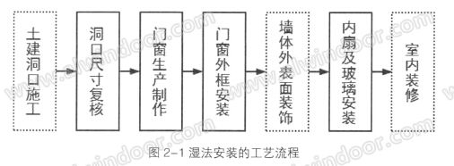 圖2-1為傳統濕法安裝的工藝流程。傳統的門窗濕法安裝方式存在以下幾方面的弊端。