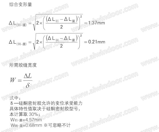 由于金屬附框材料、建筑墻體所用材料的線膨脹系數不同,導致由于熱脹冷縮而產生位移變化量也不同,進而會產生不同材料間的相對位移。針對于產生的相對位移量,附框與砂漿之間的膠縫寬度,需要根據實際情況來設計確定。