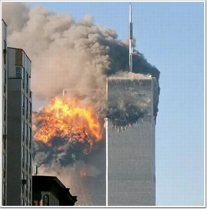 (9·11中,近3000人正是靠電梯才得以在第二次飛機碰撞前的短短十多分鐘逃生的。圖片來源:維基百科)