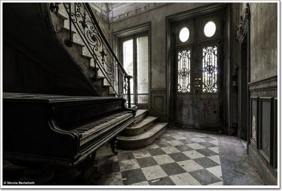 據(jù)悉,尼古拉-貝爾泰洛蒂不僅是一名專業(yè)的攝影師,而且愛好城市探險(xiǎn)。在搖搖欲墜的廢墟建筑消逝之前,他探訪了大量的別墅、教堂和普通住宅等,拍攝了各色震撼人心的照片。他說:“我這樣做是想用鏡頭向人們展現(xiàn)廢置建筑的獨(dú)特之美。”目前,這些作品陳列在意大利艾爾薩谷口村科洛里畫廊里。