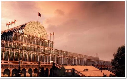 它是萬國工業博覽會場地。1854年被遷到倫敦南部,可惜因為玻璃和金屬都非常不耐高溫,在1936年的一場大火中這個奇觀被付之一炬。英國前首相丘吉爾曾表示它的燒毀是“一個時代的終結”。
