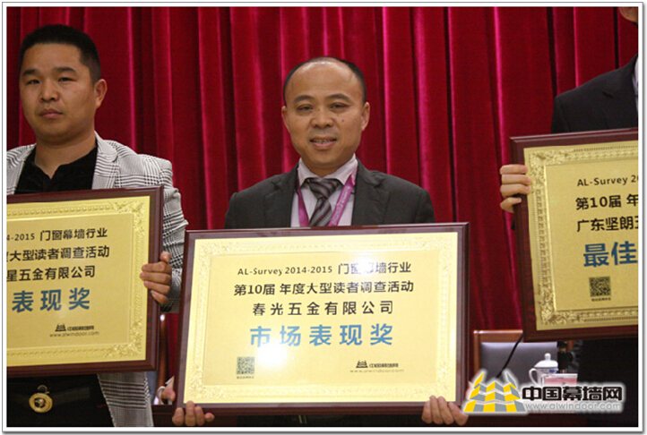 春光五金自去年11月入圍第十屆AL-Survey門窗幕墻大型讀者調查活動以來,倍受廣大行業讀者和用戶的青睞,通過三個多月的網上票選和專家評審,最終以4169票,榮獲市場表現獎第二名。