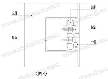 將卡件安裝到位,使卡件與橫梁共同形成一個封閉腔體將掛軸箍住,最后使用自攻釘(詞條“自攻釘”由行業大百科提供)將卡件固定在橫梁上(見圖4)。