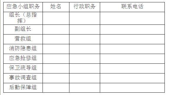 1、成立應(yīng)急預(yù)案小組:(說明:組長一定要是建筑總承包單位的項(xiàng)目經(jīng)理或安全負(fù)責(zé)人或技術(shù)負(fù)責(zé)人,幕墻分包單位的任何人都沒有這個(gè)資格擔(dān)任。)
