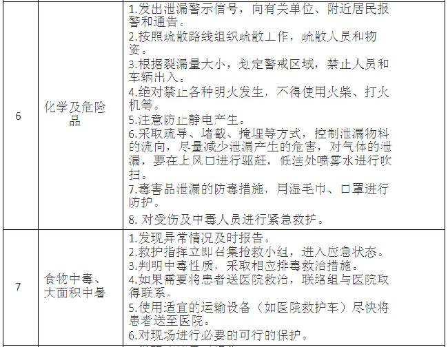 3、對于各類事故事件的緊急應(yīng)急措施:
