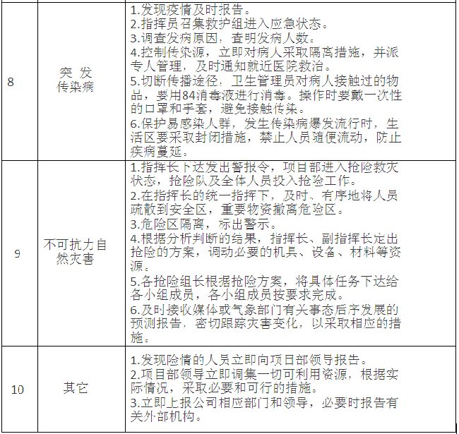 根據(jù)項(xiàng)目特點(diǎn)和應(yīng)急工作需求確定其他相關(guān)保障措施(如:交通運(yùn)輸保障、治安保障、技術(shù)保障、醫(yī)療保障、后勤保障等)。