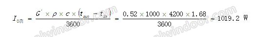 標定結果表明,實際測得的熱量為1019.2W,與輻照標定值1111.5W有一定差距,原因可能是試件安裝框部分未安裝試件,部分熱量以對流方式通過外環境箱流失。因此,對水冷-熱計量系統的進一步標定與典型門窗試件測試相結合,通過測試結果與理論計算值比較對該系統可靠性進行確定。